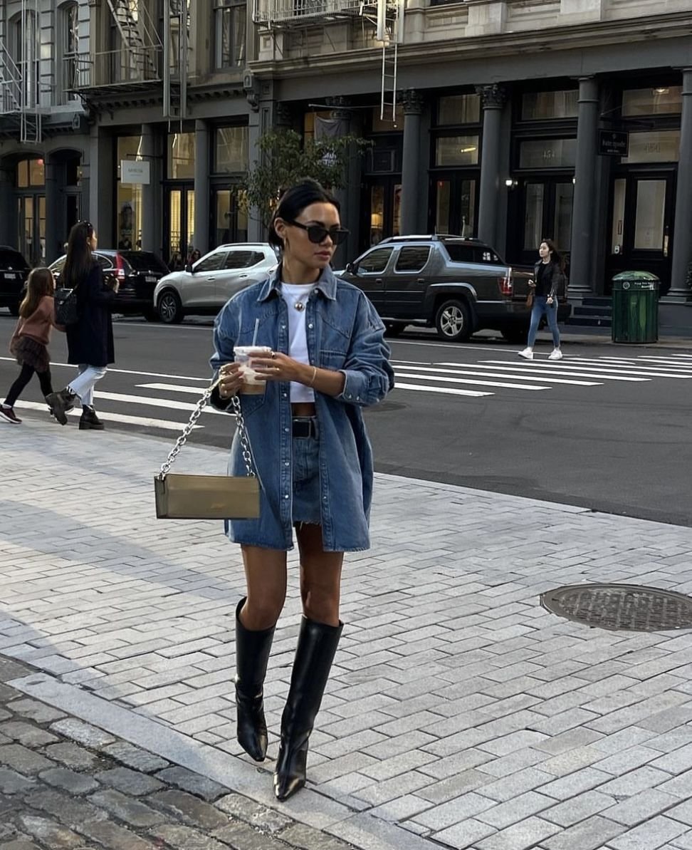 Knee-substantial boots can be worn with a selection of outfits, but a single of our favourite techniques to don them is with a mini skirt or gown. Imagine Matilda Djerf, one of her traditional outfits is an outsized blazer, mini skirt and knee highs.